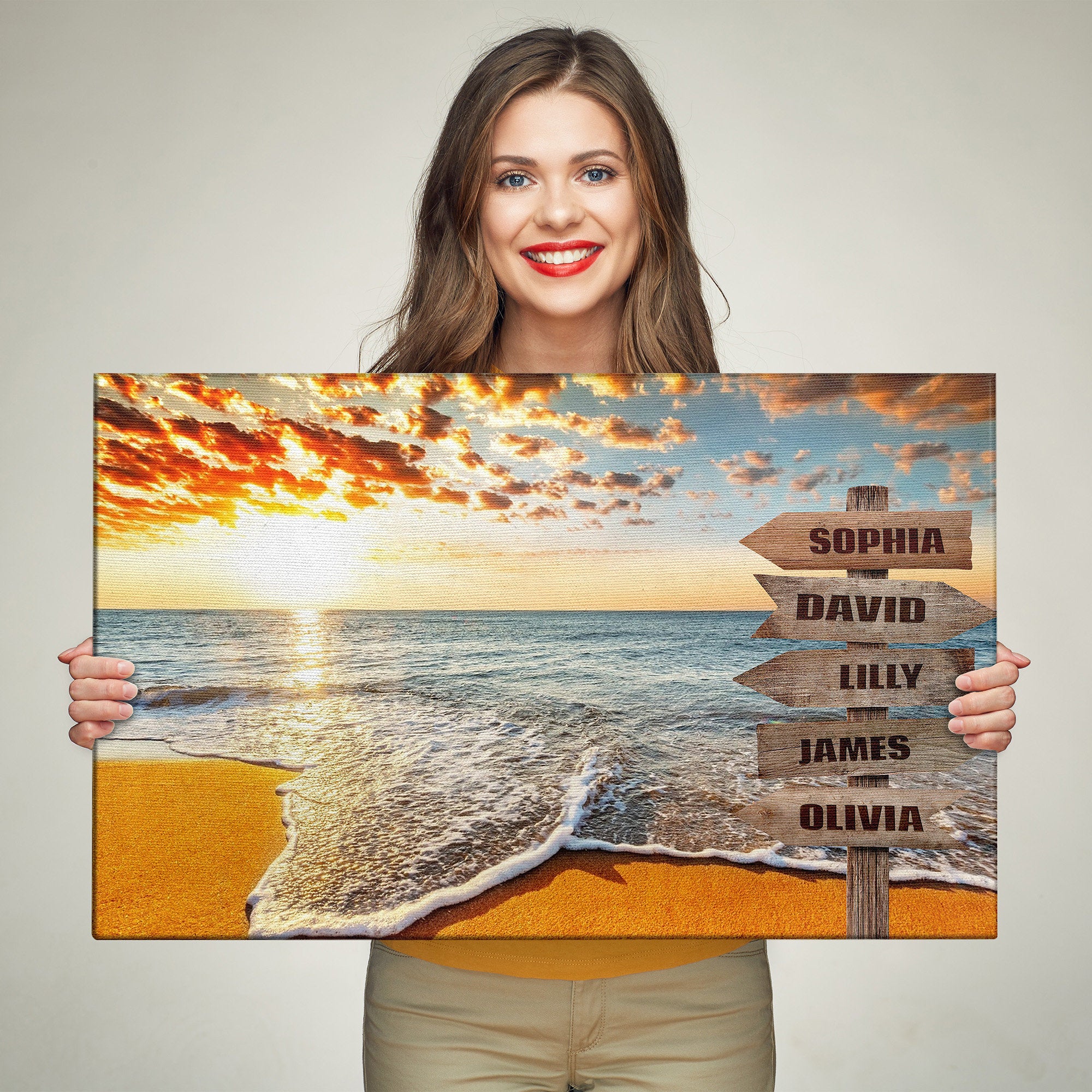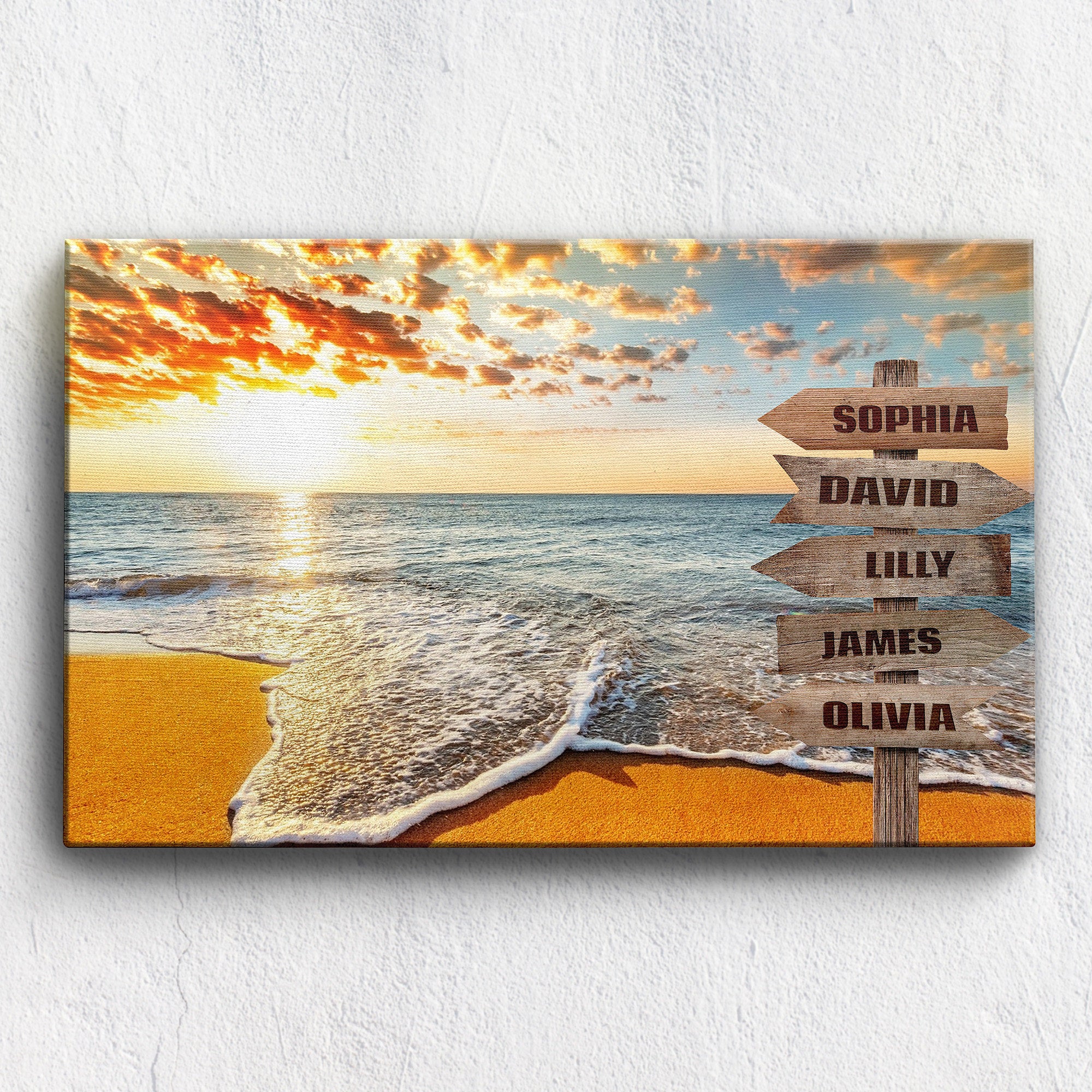 Beach Sunrise Customized Canvas For Father's day, Family Wall Décor, Gift Ideas For Anniversary,Birthday, Father's day,Mother's day, Street Sign Canvas, Personalized Canvas