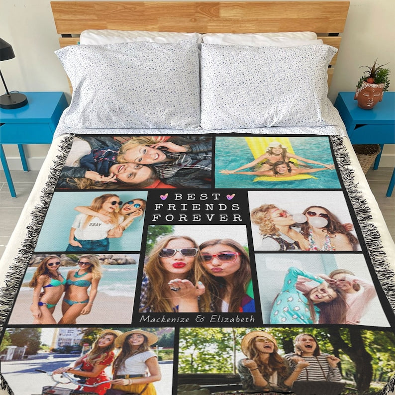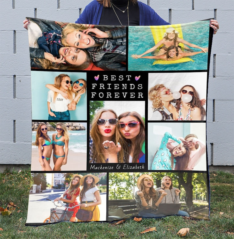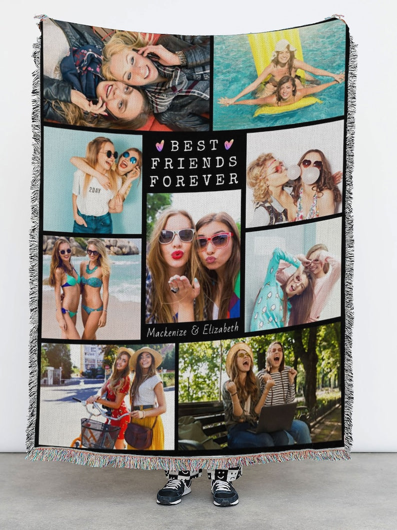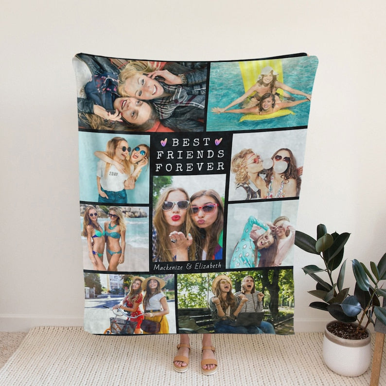 Keepsake Best Friends Photo Blanket, BFF Custom Blanket, Blanket For Bestie, Gift For Friends, Custom Sisters Names, Birthday Friends Gift