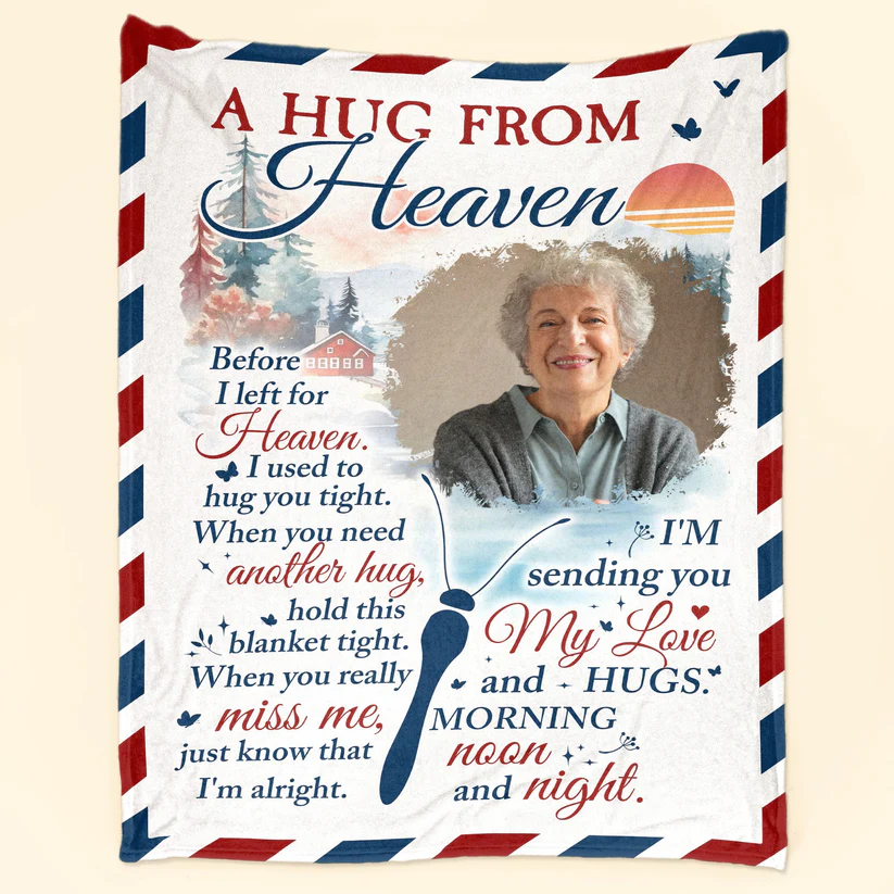 Personalized Photo Blanket Memorial Present for Special Person "A Hug From Heaven"