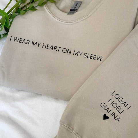 Custom Mother's Day Sweatshirt, Gifts for Mom.I WEAR MY HEART ON MY SLEEVE T-shirt, Crewneck, Hoodie, perfect gift for MOM, yourself and ANYONE!!